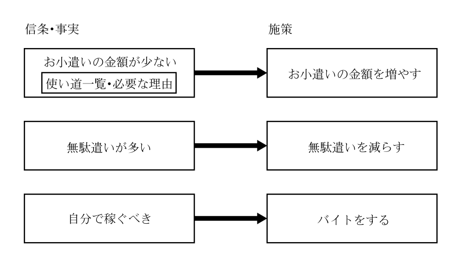 前回はみひろにとってちょっと辛いことになったから、欲しいものを諦めなくてもいい別のアクションを提案しますね。信条「必要なお金は自分で稼ぐべき」、施策「バイトをする」