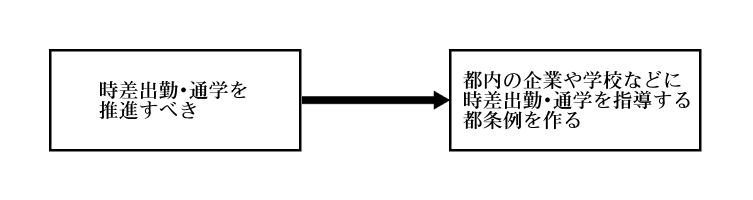 そうだ先輩、私良いこと思いつきました! 時差出勤させたいなら、それをそのまま都条例にすればいいんじゃないですか? こんな風に