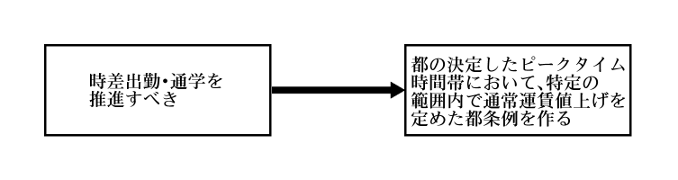 ええと、ピークタイムは都が決めて、その時間帯は各会社の判断で通常運賃よりも高くすること、という都条例を作ればいいのかな? 咲良ちゃんの言ったこと、そのままですけど
