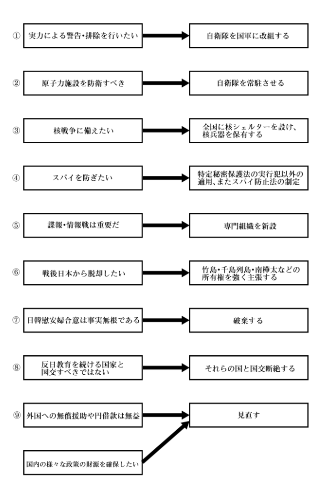 そうかもしれません。ただやはり「知っている人にしか伝わらない」という書き方をする傾向があるように思えます。⑥も「戦後日本からの脱却」という信条・事実と「所有権の主張」という施策のつながりがわかりにくいですね